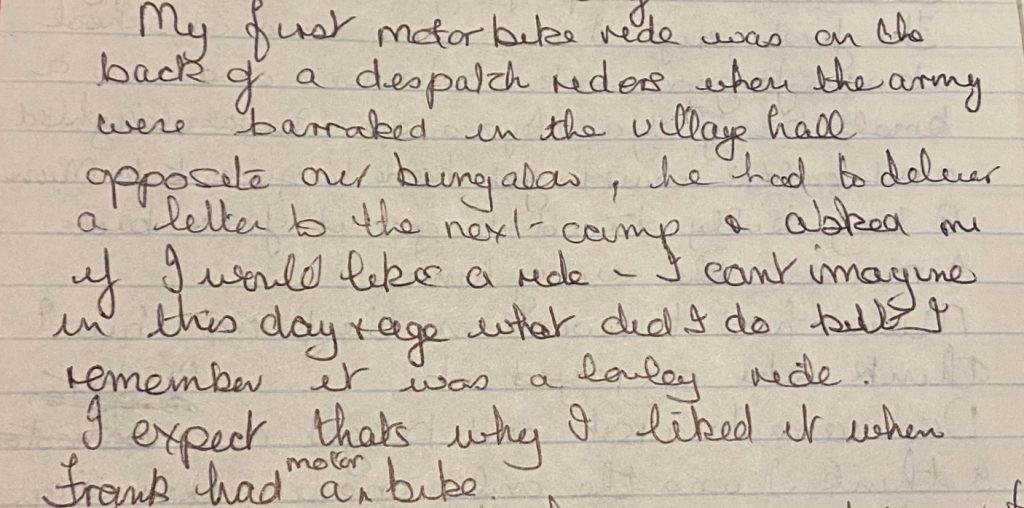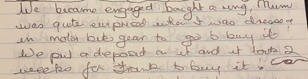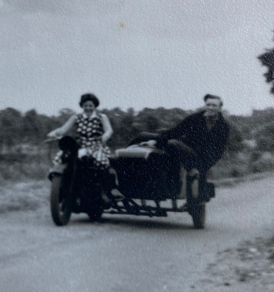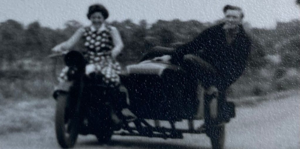 Sheila loved ice skating at Harringay Speedway with a gang of friends and this is where she first met Frank when they were still teenagers. Sometime later, they were both at a party with the same group of friends when Frank offered her a lift home on his motorbike – and that was the start of their relationship. Motorbikes played a big part in their early life together, including a biking holiday all the way to Italy.